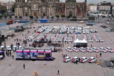 El jefe de gobierno de la Ciudad de México (CDMX), Miguel Ángel Mancera, y el secretario de Movilidad Héctor Serrano dieron el banderazo en el Zócalo Capitalino a las nuevas unidades ecológicas que prestarán servicio de transporte público y con las que se busca reducir las emisiones de gases contaminantes. Se trata de unos 200 taxis híbridos y 228 autobuses a GNV, y estos últimos