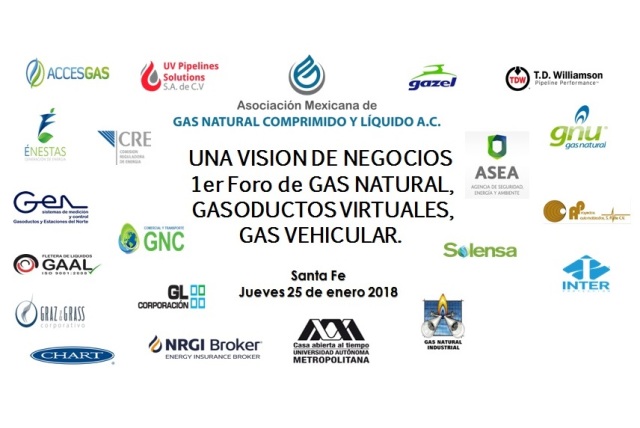 La Asociación Mexicana de Gas Natural Comprimido y Líquido (AMGNCyL) llevará cabo el próximo 25 de enero el 1° Foro de GAS NATURAL, GASODUCTOS VIRTUALES y GAS VEHICULAR, bajo el lema Una Visión de Negocios.